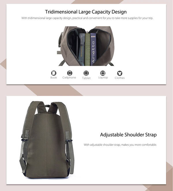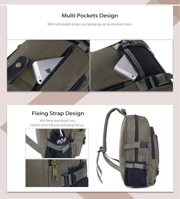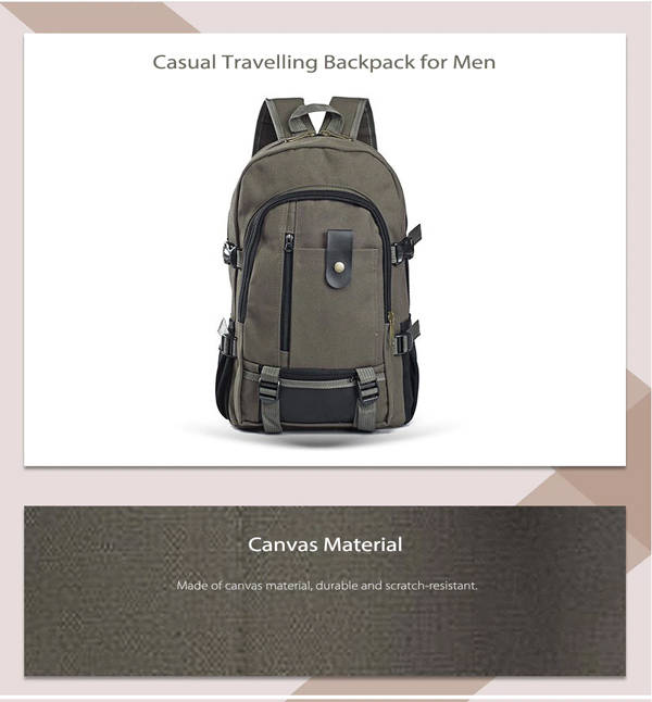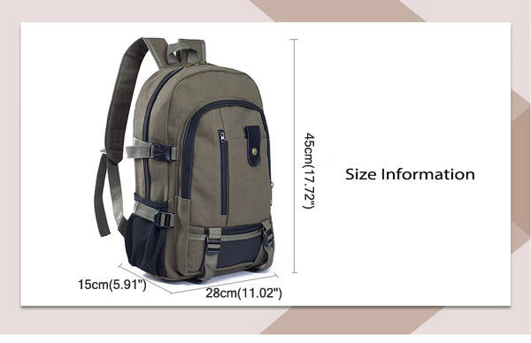 Features | This backpack in high-quality canvas is durable and scratch-resistant. Adjustable shoulder straps offer you convenience and comfort. It is large enough to carry all your on-the-move essentials. Ideal for hiking, mountaineering, outdoor travel, field exploration, etc. |