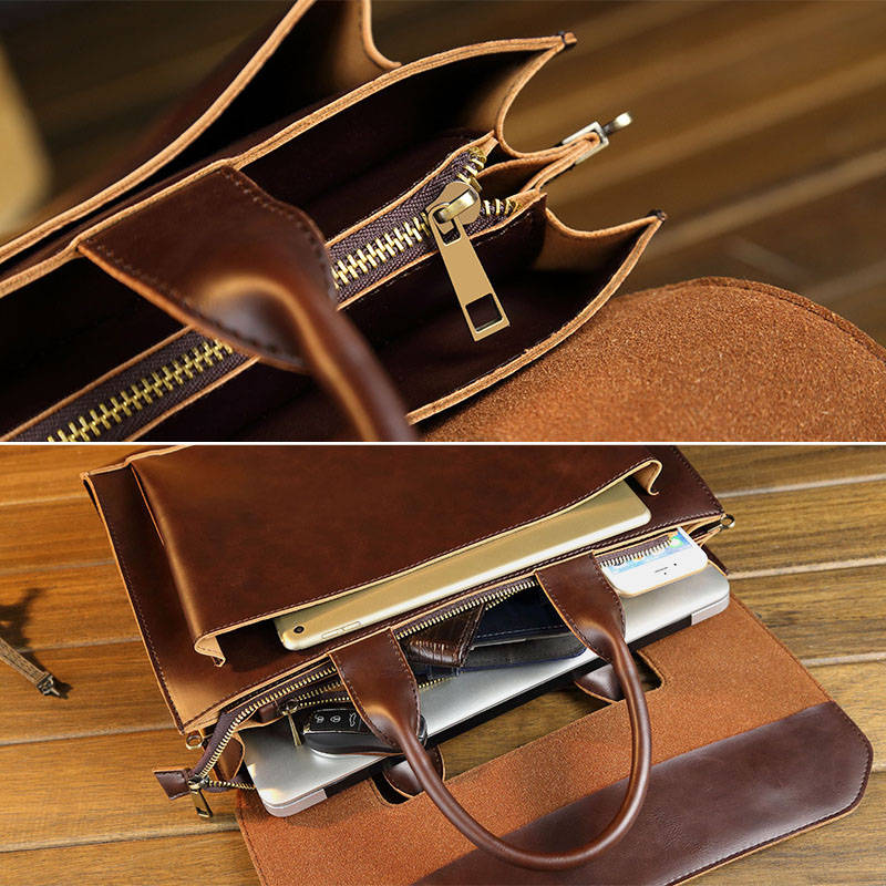 Men Retro Multi-compartment Briefcase Flap-Over Large Capacity Soft PU Leather Men Retro Multi-compartment Briefcase Flap-Over Large Capacity Soft PU Leather