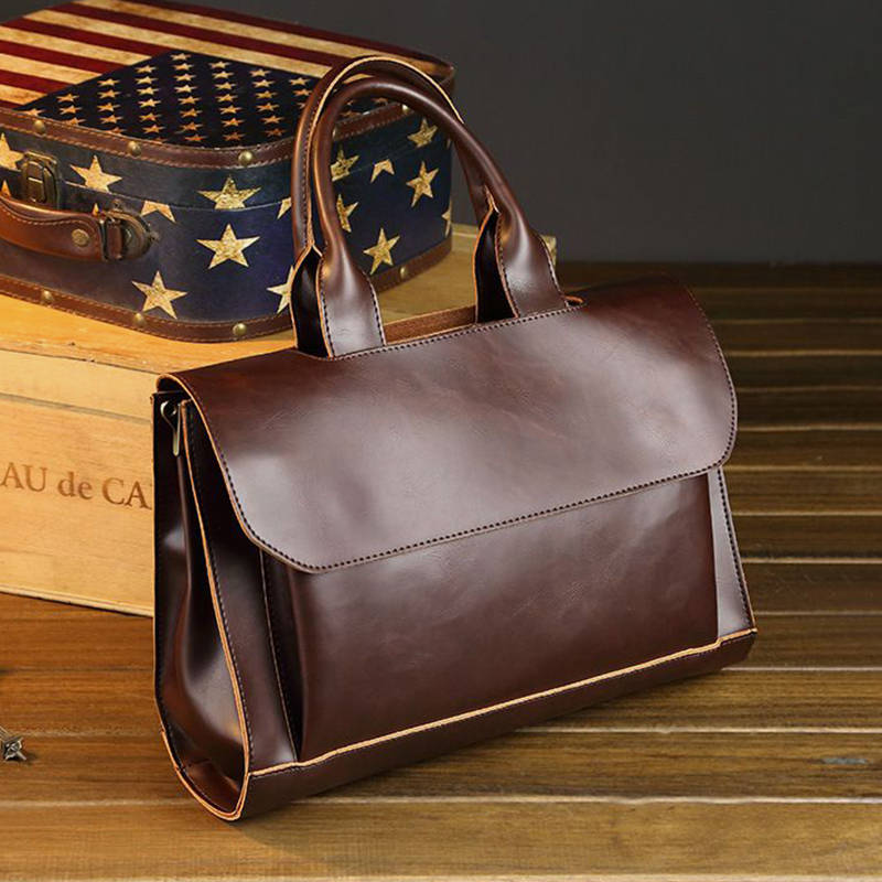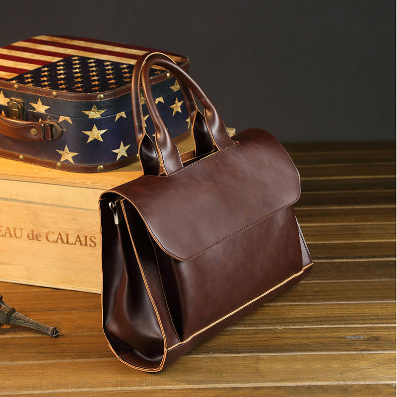 Men Retro Multi-compartment Briefcase Flap-Over Large Capacity Soft PU Leather