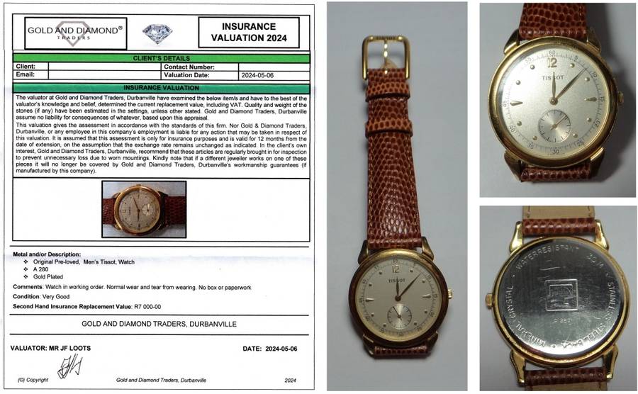 Men's Tissot Gold Plated Watch (A 280) with Valuation Certificate