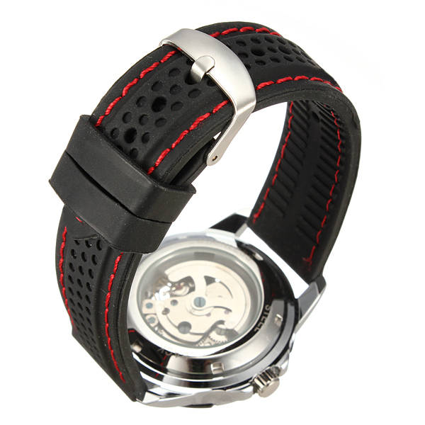 Men Sport Skeleton Automatic Mechanical Silicone Black Wrist Watch