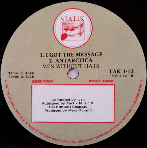 Men Without Hats - Safety Dance (Extended 'Club Mix') vinyl 12" 45 RPM Single - Import