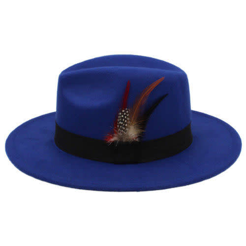 Men Women Panama Fedora Wide brim Cool formal Hardfelt summer spring sunhat(Blue)