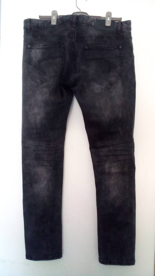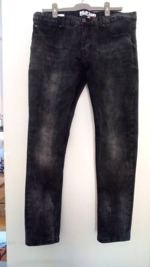 Mens black skinny jeans, distressed and faded as part of the design, in good condition