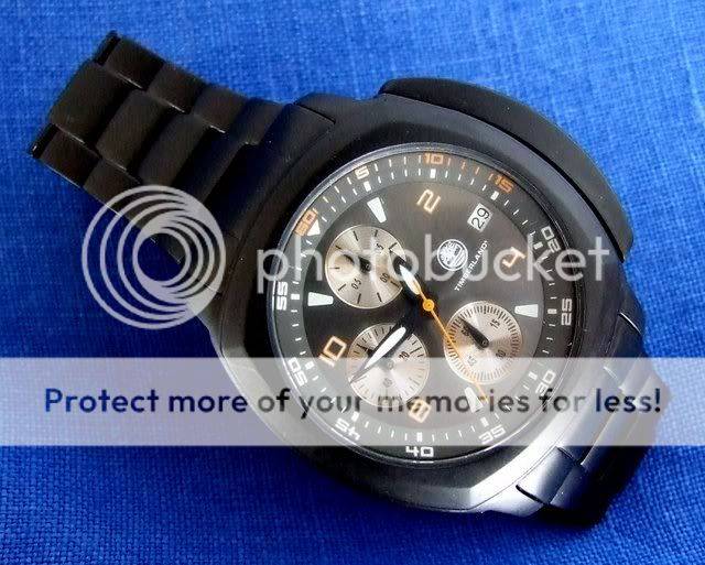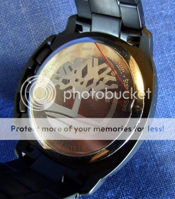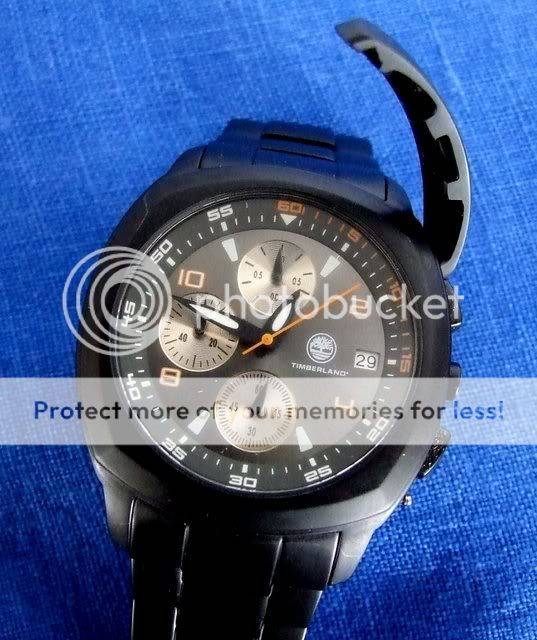 It bears the Timberland logo on the face and the setting buttons on the right hand side have a cover that goes over the top of them and hinges at the top to lift upwards, and then closes with a satisfying click.