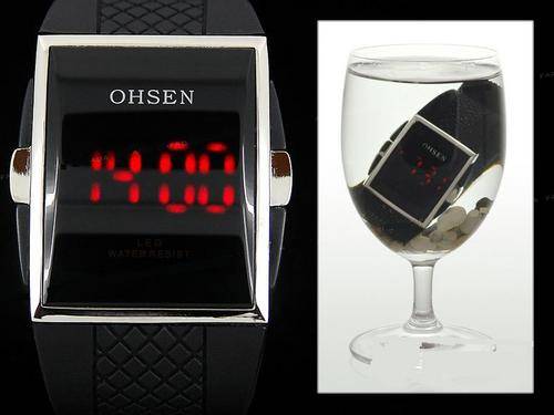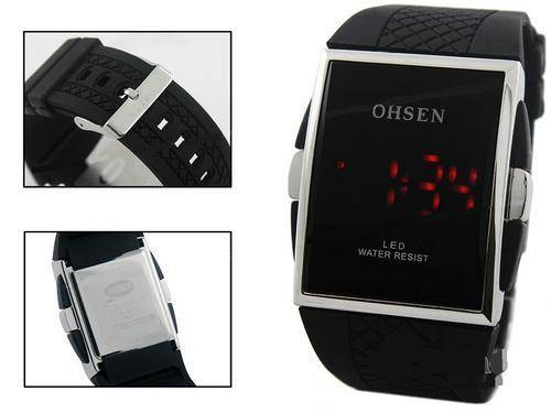 RED LED DISPLAY, BIG EASY SEEING. MINERAL GLAS LENS, LESS LIKELY TO SCRATCH.CASING S/STEEL SLIM CHANCE OF ALLERGIES. SIZE 3.5X4.1X1.3CM STRAP PLASCTIC 3ATM WATER RESIST