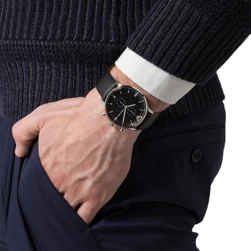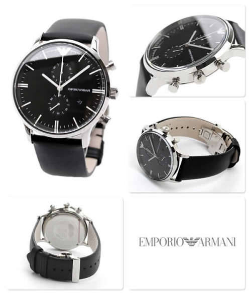 The Emporio Armani black genuine leather Men’s watch is part of the Emporio Armani Gianni Collection. The AR0397 watch certainly stands out with its stunning polished stainless steel finished case. This Armani watch features a desirable black genuine leather strap, giving a formal and sophisticated feel to the watch. The Armani AR0397 watch has a black dial with a multifunction feature and date display window.