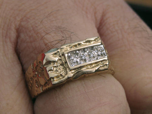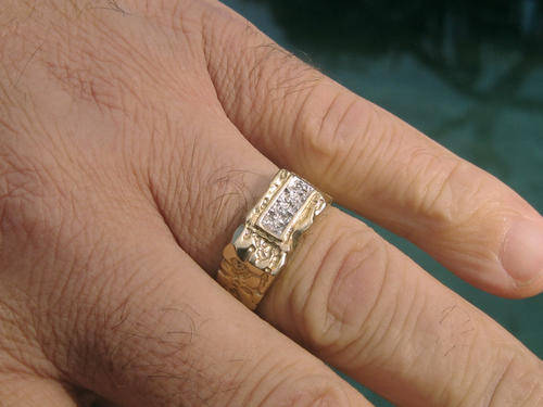 Gold ring. Valued at R13 500.  Has 4 tiny diamonds set into the design in the middle. This is an absolute bargain.