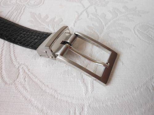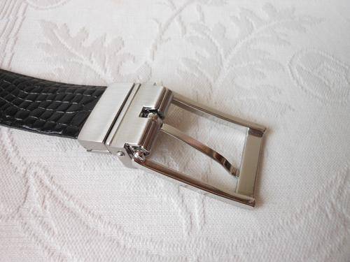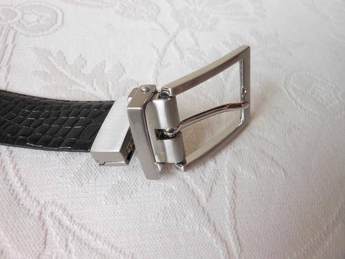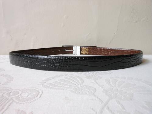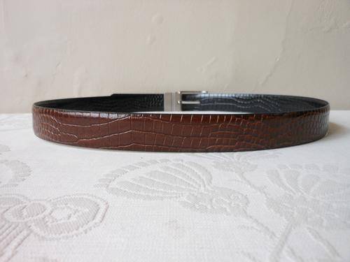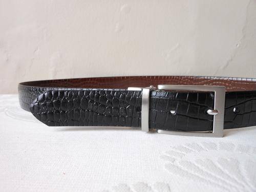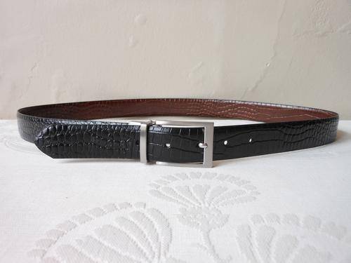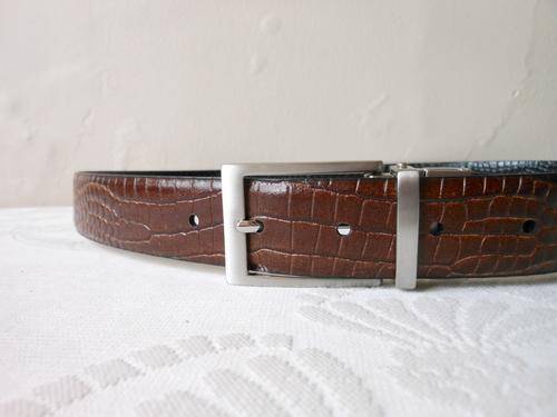 Stylish men's bonded leather reversible black/ brown belt with croc embossed effect. Very good condition, with some light wear. 105 cm total length. To fit waist size 87 cm to 97 cm. 3 cm wide.