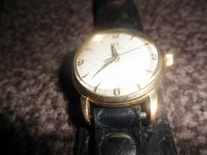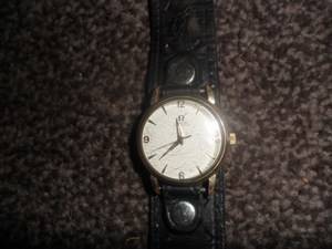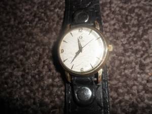 A LOVELY IN WORKING GOLD PLATED MENS OMEGA AUTOMATIC WATCH WITH LEATHER STRAP. A NAME AT BACK GIVEN TO THIS PERSON IN 1959 FOR 25 YEARS SERVICE. STRAP IN GOOD CONDITION FOR ITS AGE. NB GLASS HAS SCRATCHES ON IT AND THE GOLD AT SOME PLACES LOST ITS COLOUR MORE TOWARDS THE STRAP HOLD ENDS. LOOK FORWARD TO YOUR BID. NORMAL POSTAGE 35.00