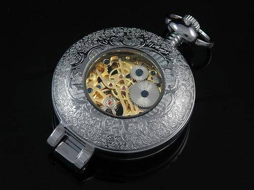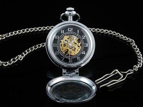 MENS POCKET WATCH WITH MAGNIFYING GLASS AND CHAIN