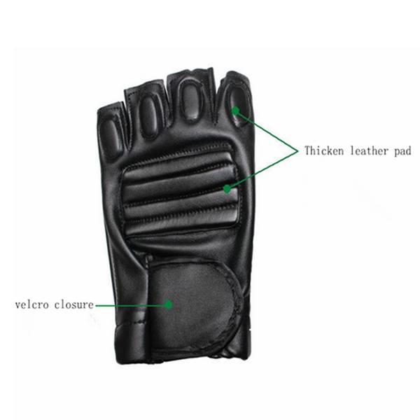 Men's Black PU leather half-finger gloves. Soft and comfortable to wear for a long time. Good ventilation, keep your hands in good condition. Half-finger design provides greater flexibility. Comfortable elastic wrist with velcro closure design. Medial elastic band design can effectively snapping the wrist. Thickened leather pad design at the back of the hand and fingers. Can effectively reduce the impact force and mitigate the heavy,anti-friction.