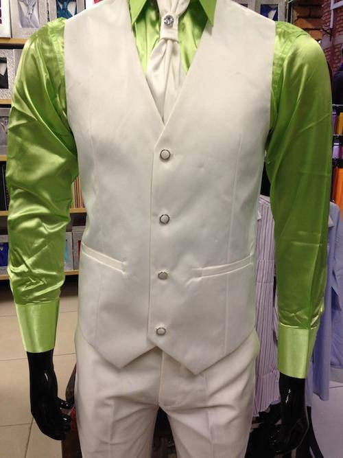THE SUIT COME WITH THE SHINNY WAISTCOAT BUT SHIRT.