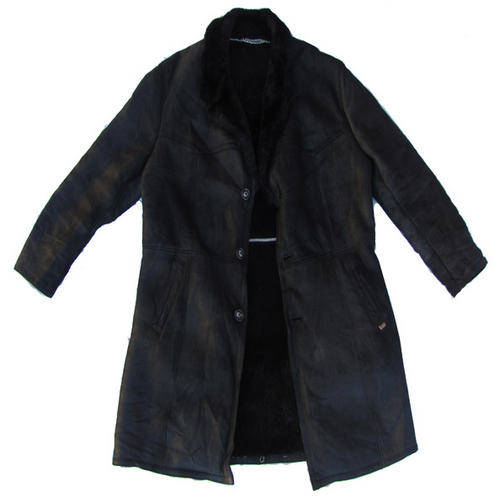 Mens Stylish Black Genuine Long Leather Coat, with Acrylic Fur Lining, SA Size 40 M.Flues (Label) | |