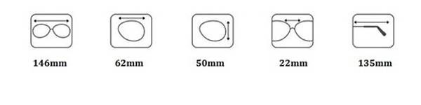 Detail In Size: One Size Total Width: 146mm/ 5.75 inch Lens Width: 62mm / 2.44 inch Lens Height: 50mm / 1.97 inch Nose Bridge: 22mm / 0.87 inch Leg Length: 135mm / 5.31 inch (10mm=0.39inch)