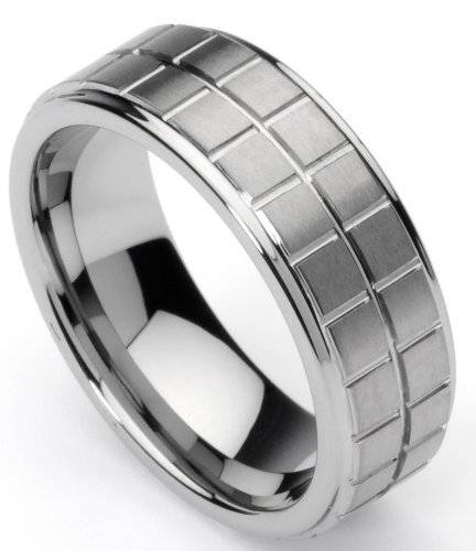 Made of high quality tungsten metal, this ring is meant to last forever. Tungsten rings are virtually scratch proof and therefore won't ever lose their shine. This ring is 8 mm wide and has a smooth finished interior for superior comfort. With its unique slatted design, we are sure that you will wear it with pride. This ring is manufactured by Men's Collections.