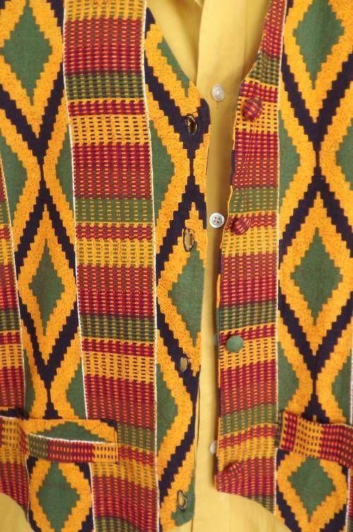 Men's waistcoat in Graphic design-mustard,green,maroon,black.Size Medium-Chest 100cm.Button down front.Two dummy pockets on front.Reversible!New condition.