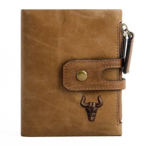 Men's Wallets With Zippers Leather Front Pocket RFID Wallets Mens Leather Wallet Bifold With ID Window