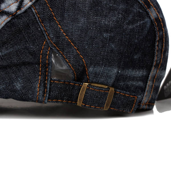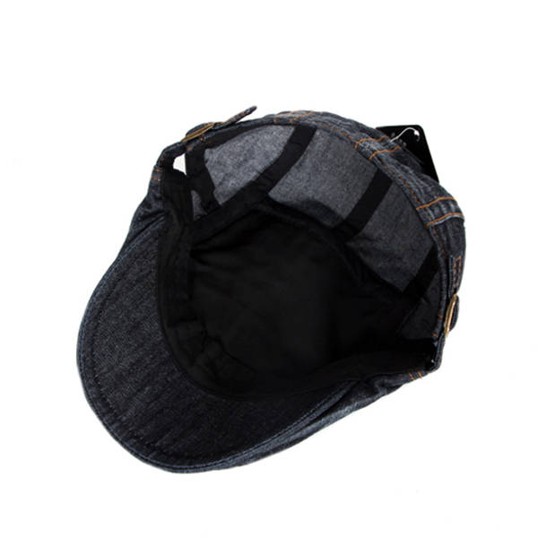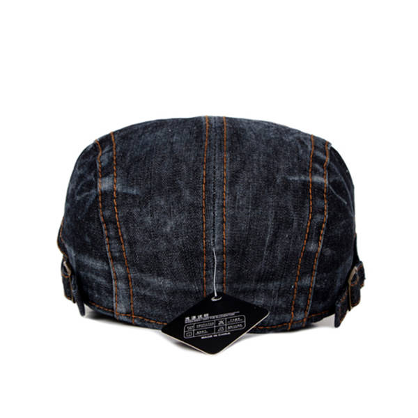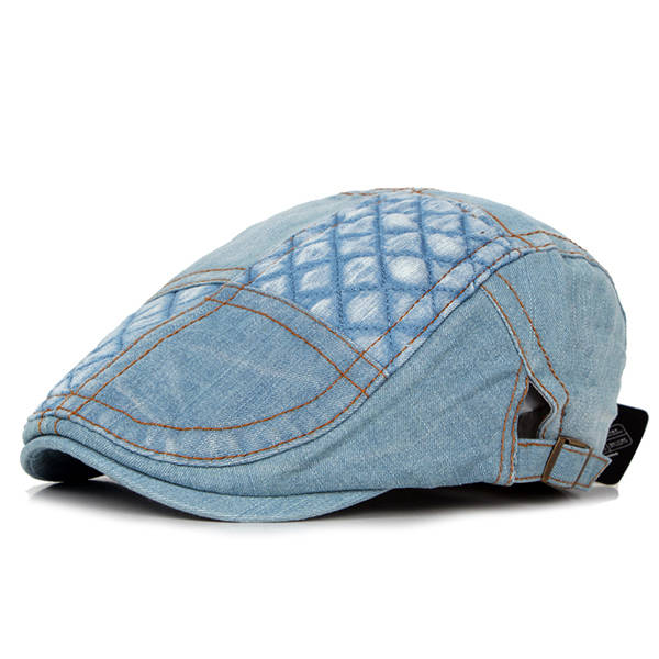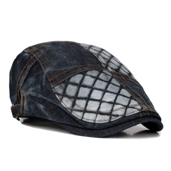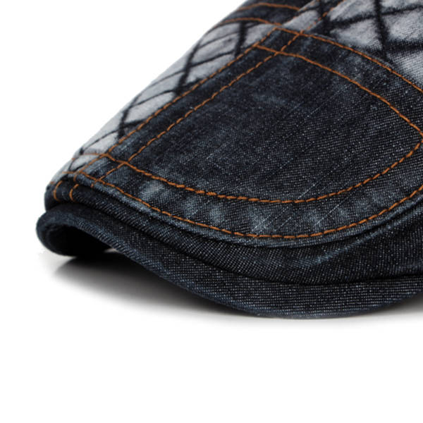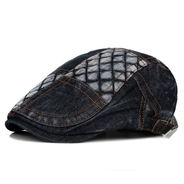 Mens Washed Denim Grid Beret Hat Casual Outdoor Visor Forward Hat Adjustable