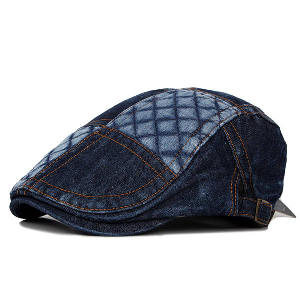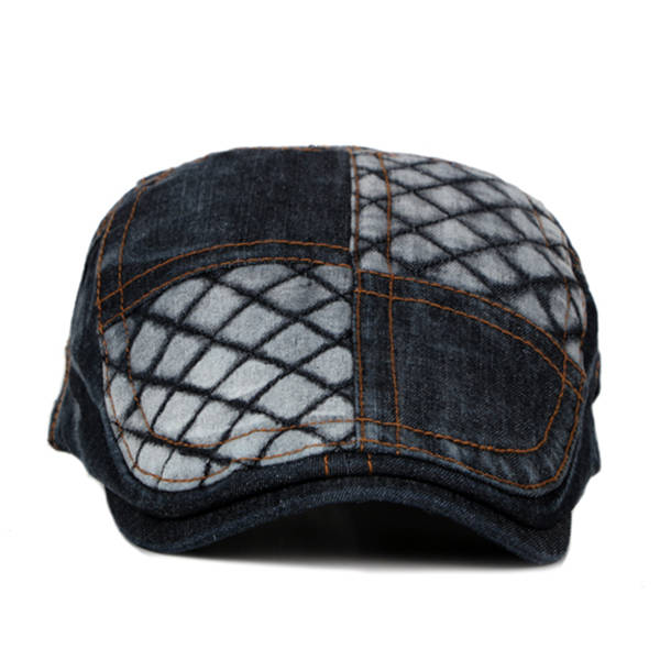 Material:Denim Type:Beret Hat Occasion:Casual Patter:Stitching Grid Season:Spring,Summer,Autumn Color:Black,Dark Blue,Blue,Light Blue