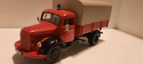 1:43 SCALE DIE CAST MODEL - MINICHAMPS MERCEDES BENZ L3500 CANVAS TRUCK FIRE SREVICES