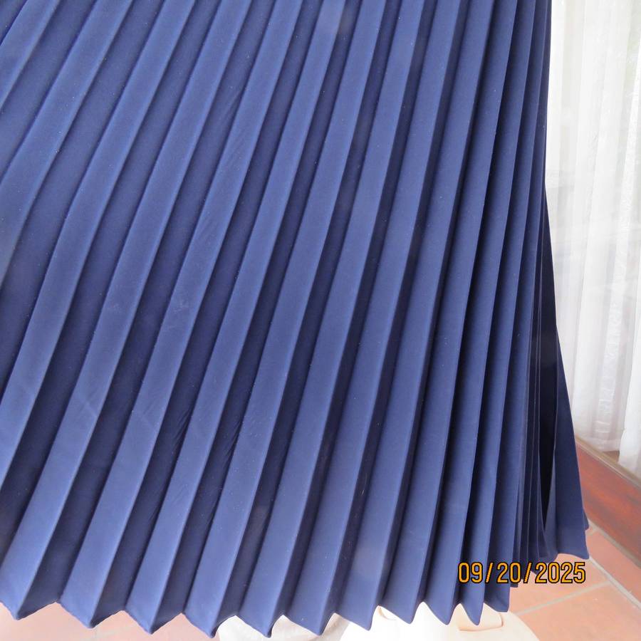 MERIEN HALL navy permanent concertina pleated flare polyester skirt with elasticated waist. Size 36-12. Ankle length. As new condition.