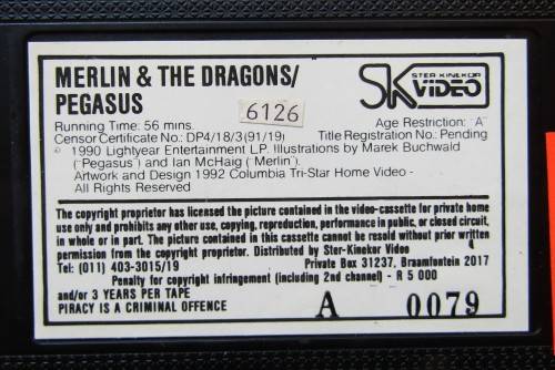 Merlin and the Dragons / Pegasus - VHS Video Tape (1992).