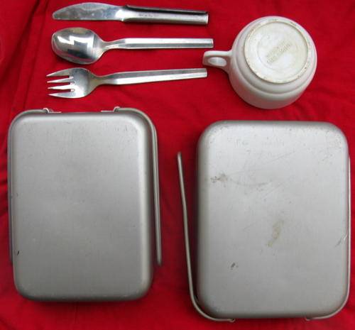 MESS KIT : WIDNEY - 1968 DIXIES PLUS CUTLERY SET AND WHITE MELAMINE CUP : BORDER WAR ERA