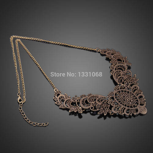 METAL HOLLOW LEAVE FALSE COLLAR NECKLACE