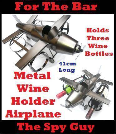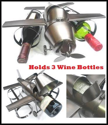 Metal Wine Airplane Holds 3 Wine Bottles All Metal Made 41cm Long for Any Home Bar Pub