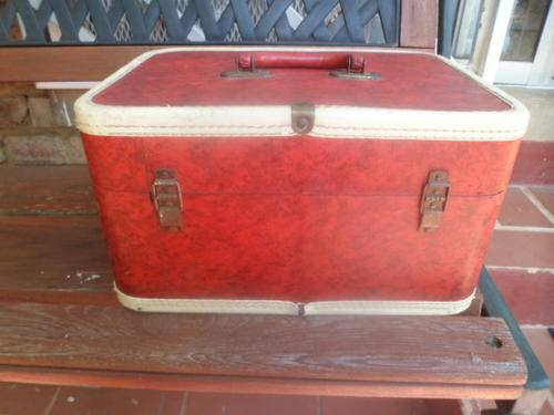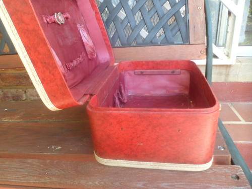 METEOR LUGGUGE VINTAGE VANITY CASE RED AND WHITE
