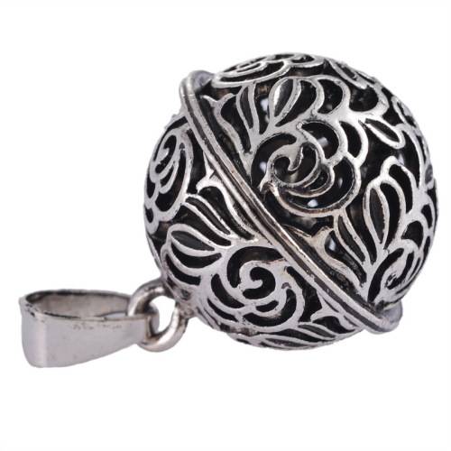 ANTIQUE FINISH FLORAL ROUND HOLLOW CAGE PENDANT (INCLUDES CHIME BALL)