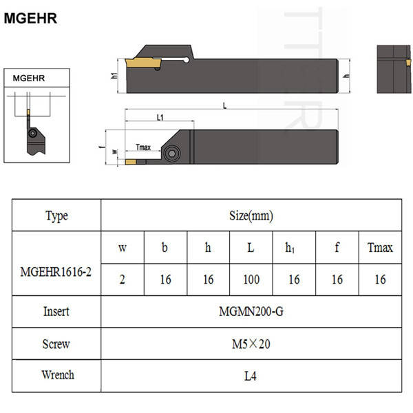 MGEHR 1616-2 16*16*100mm Lathe Turning Tool Holder With 4pcs MGMN200 Insert For 2mm Cut