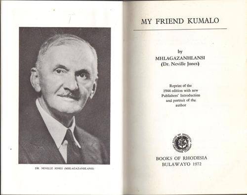 1) MY FRIEND KUMALO ~ REPRINT OF THE 1944 EDITION WITH NEW PUBLISHER'S INTRODUCTION AND PORTRAIT OF THE AUTHOR. BOOKS OF BULAWAYO 1972, H/C, NO D/J, 126 PAGES. BOOK IS IN GOOD CONDITION.