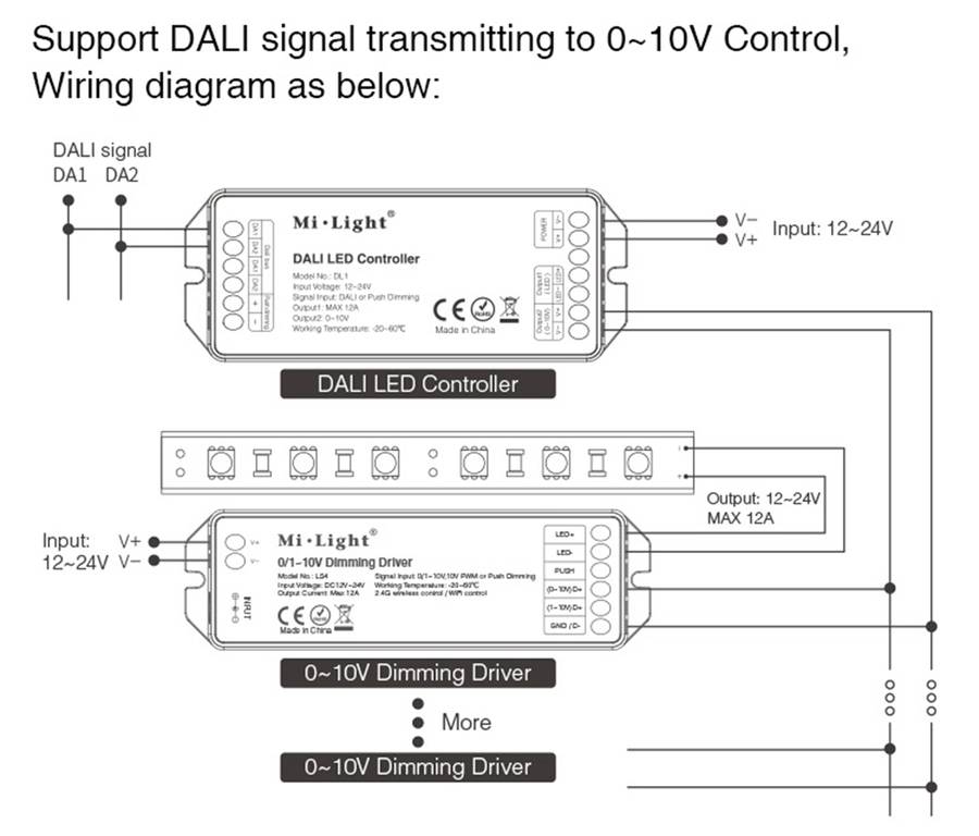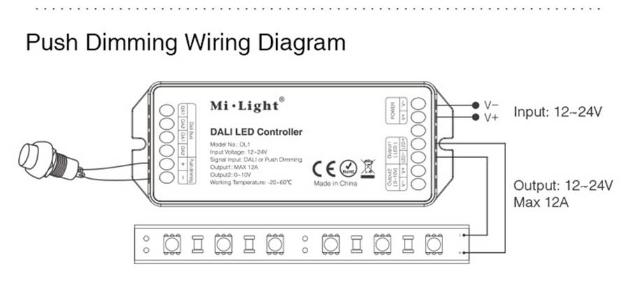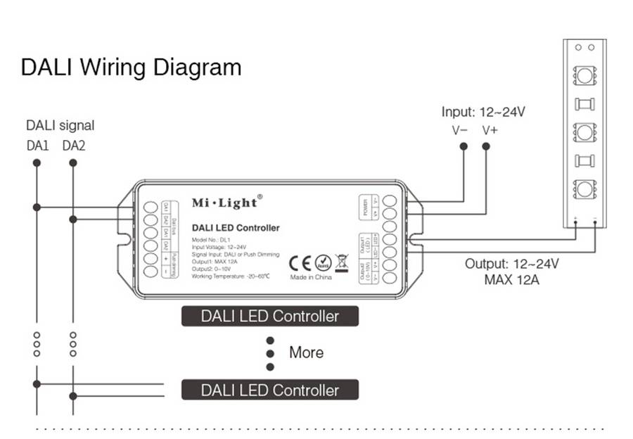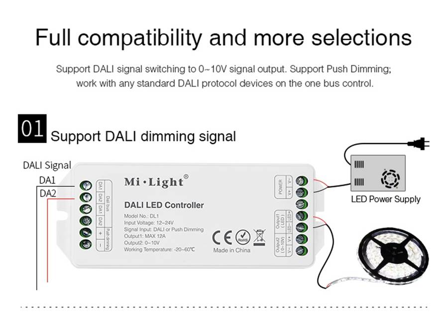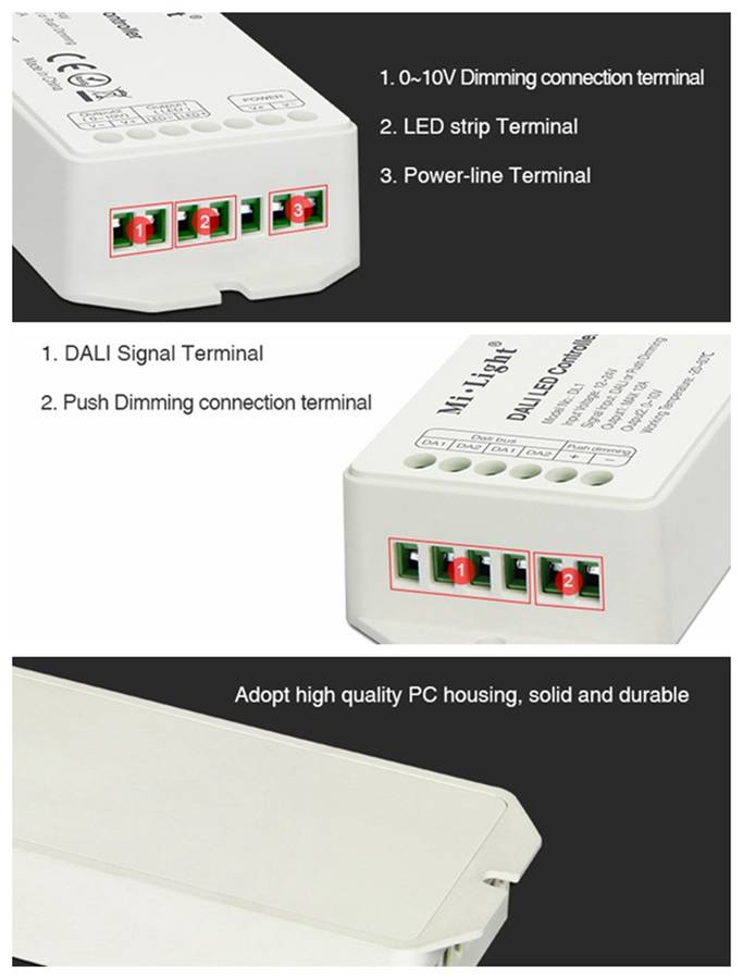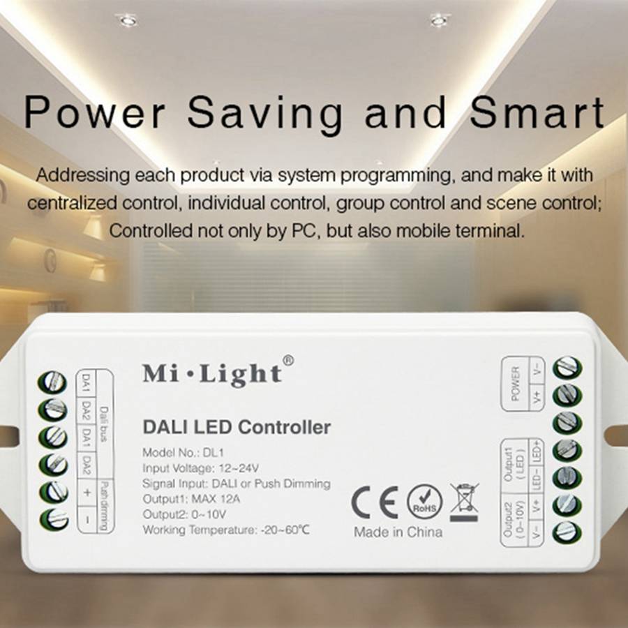 Specification: Product Name: DALI LED Controller Model No.: DL1 Input Voltage: DC12-24V Output Current: Max 12A Working Temperature: -20-60a Input Signal: DALI Dimming Signal/Push dimming Standard Protocol: IEC62386 Dimming Range: 0-100% Dimension: 119*47*23mm Features: Support DALI dimming signal, and DALI signal transmitting to 0-10V signal, support Push dimming. Power saving and smart control Full compatibility and more selections Package included: 1*DALI LED controller