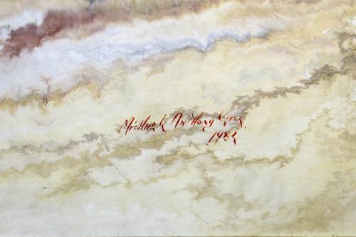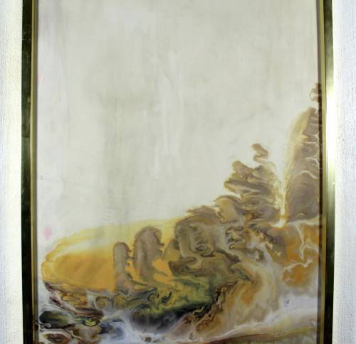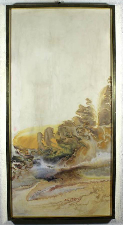A beautiful abstract. Unfortunately it requires a very good clean and there is a nick in the paint. It measures 99cm x 48cm and the frame measures 102cm x 51cm. Spoil yourself, bid now!!