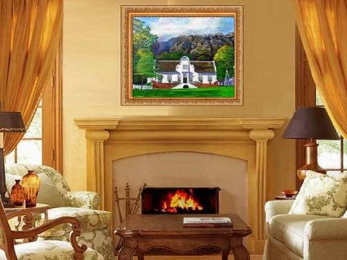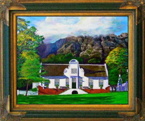 This beautiful painting is of the Schoongezicht Manor House of the Rustenberg Wine Estate near Cape Town, dates back to 1692. It is a beautiful example of the classic Dutch Colonial home, sitting at the foothills of the Simonsberg Mountains.