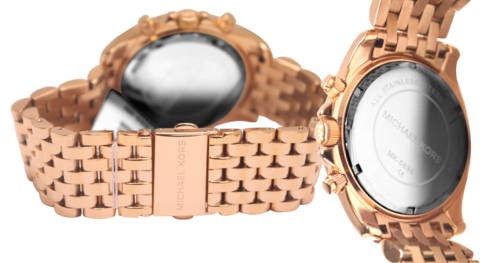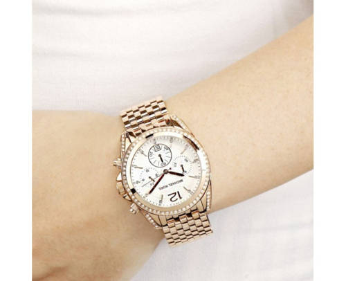 Rose gold-tone stainless steel case with a rose gold-tone stainless steel bracelet.
