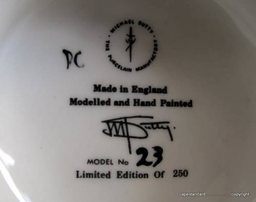 MICHAEL SUTTY, MODELED, HAND-PAINTED AND SIGNED MILITARY PORCELAIN FIGURINE.