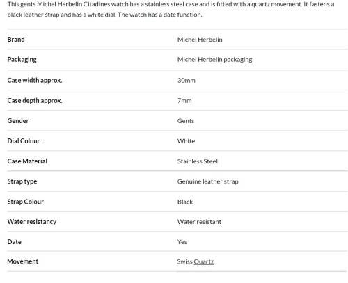 BRAND NEW; AUTHENTIC WITH ALL PAPERS. HIGH QUALITY MICHEL HERBELIN MENS WATCH MADE IN FRANCE WITH SWISS QUARTZ MOVEMENT. GREAT LOOKING WATCH.