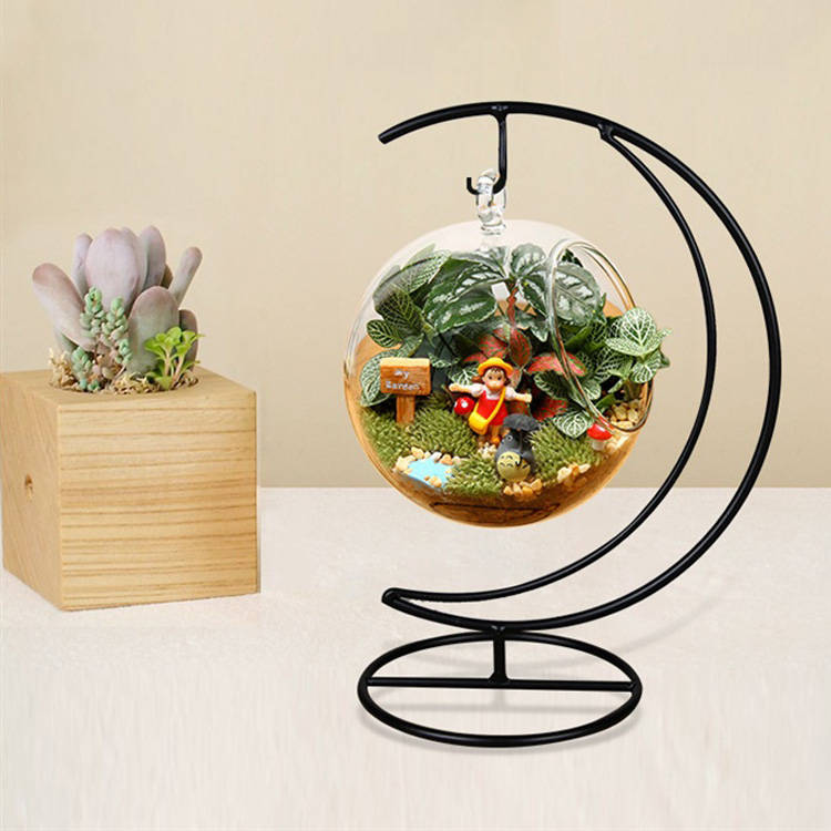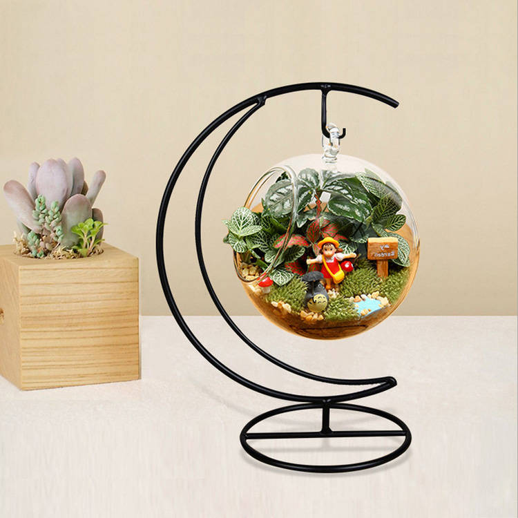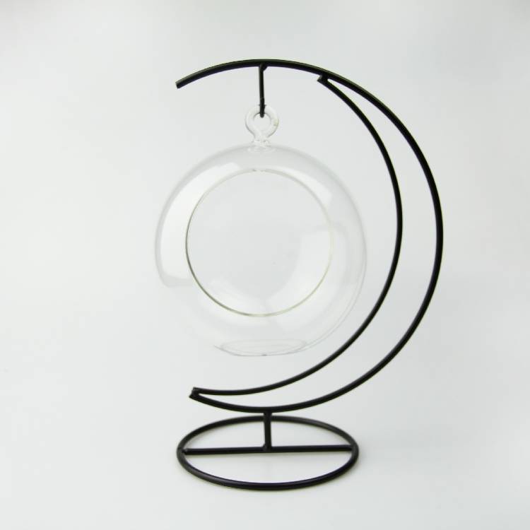Moon Shape Micro Landscape Glass Vase Suspension Iron Rack