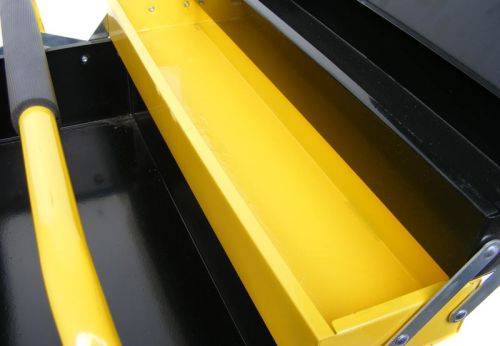 The toolbox is brand new with a minor defect. The inside of the yellow trays have marks, as if the paint was damaged and then repainted. This is the only defect and the rest of the box is as new.