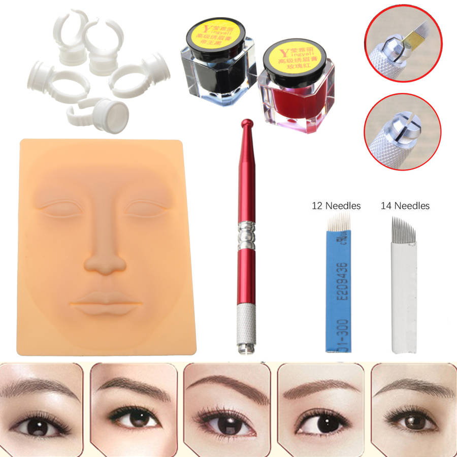 Microblading Permanent Makeup Eyebrow Tattoo Needle Pen Ink Practice Skin Kit