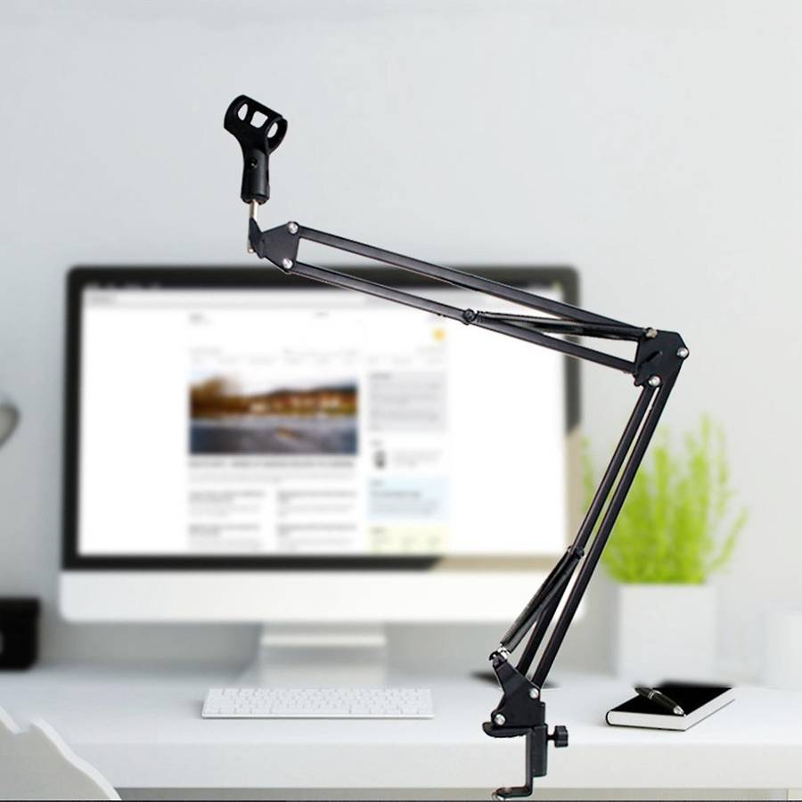 The adjustable black scissor arm bracket is made of high-quality steel frame and plastic microphone clip (included), which is sturdy and durable. It can be installed on the announcer's desk with a desktop mounting clip (included).Folding type, easy to carry. The adjustable arm allows you to easily carry it with you and adjust the appropriate angle and height to show your perfect voice.Compact microphone stand, specially designed for portability.Suitable for any store, home, stage, studio, radio and television station, etc.Completely flexible, the microphone can be firmly fixed anywhere.Colour: blackMaterial: metalSize: 37 x 8cmPackage Contents:1 x Microphone standOnly the above package content, other products are not included.Note: Light shooting and different displays may cause the color of the item in the picture a little different from the real thing. The measurement allowed error is +/- 1-3cm.