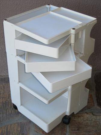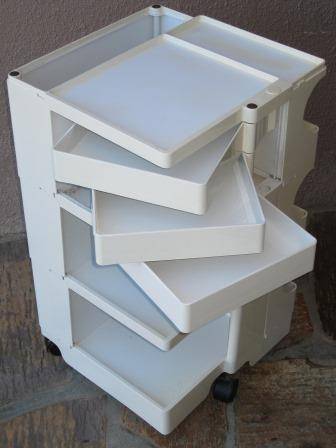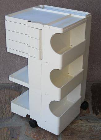 Designed in 1969 for Bieffeplast, and since inducted into the MOMA design department, this Boby trolley designed by Joe Colombo is a true mid century design classic. Boby is a trolley storage unit designed to guarantee simple vertically modular solutions and provide high, customized storage capacity. This is an original example, produced in ABS plastic and has 3 wheels (the new trolleys that are produced today have 5 wheels) These trolleys sell for $500 on Ebay.