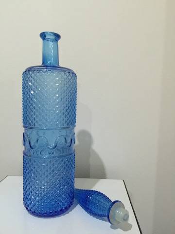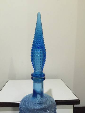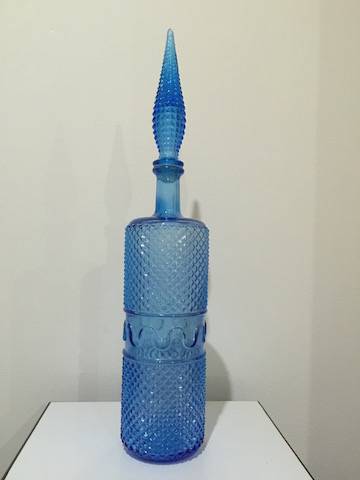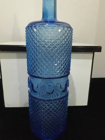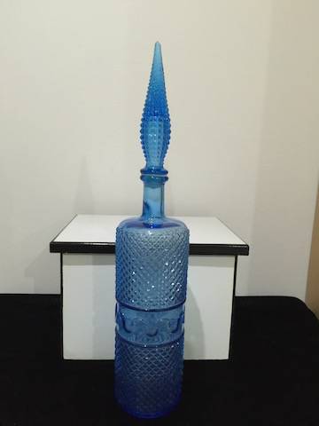 MID-CENTURY ITALIAN BLUE GLASS DECANTER - LARGE MEASURING 52CM HEIGHT WITH LID AND 35CM HEIGHT DECANTER - IN PERFECT CONDITION!!! VERY DESIRABLE FOR THE RETRO COLLECTOR!!