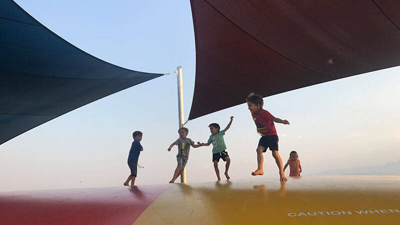 An internationallypopular attraction that has recently been introduced to our countryand showcased at selected resorts. Guests young and old love this newtake on the traditional trampoline.