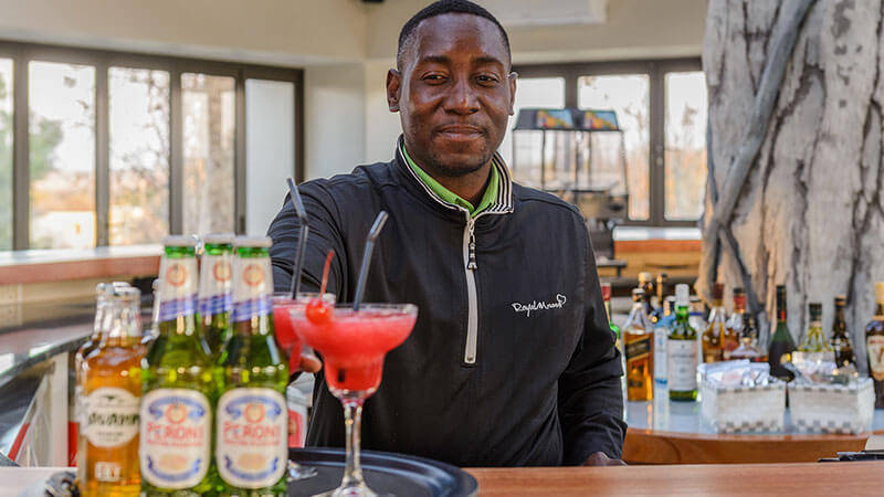 An African lounge experience, serving guests with a variety of drinks while they relax and unwind.