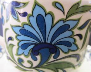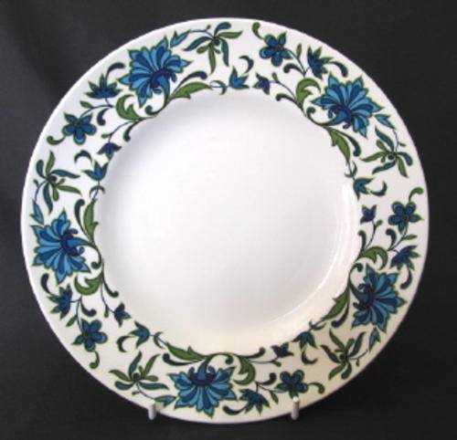 A Midwinter tea trio, Fine shape, Spanish Garden pattern by Jessie Tait. Condition good. Diameter (cup) 83 mm; (saucer) 145 mm; (plate) 177 mm.