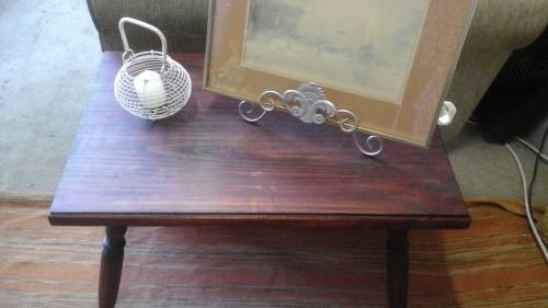 MIGHT ONLY BE PINE, BUT THIS DARK STAINED COFFEE TABLE IS A REALLY PRETTY PIECE.. FANTASTIC